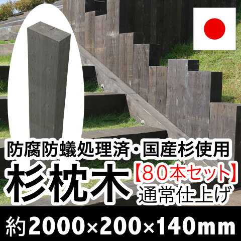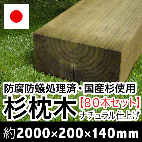 国産 杉 新品 枕木 ナチュラル仕上げ【防腐防蟻処理済】約2000×約200×約100100本セット【枕木/アプローチ/花壇/土留め/縁石/菜園/防腐/国産/枠/ステップ/敷石/縁木/防腐木材】