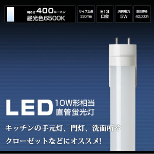 あす楽 LED蛍光灯 10w形 直管蛍光灯 10W蛍光灯代替品 口金G13 直管LEDランプ 10W型 FL10相当 グロー式 工事不要 昼光色 33cm 330mm 玄関灯 門灯 外壁灯 手元灯 ポーチライト 勝手口灯 コンパクトライト エクステリアライト 間接照明